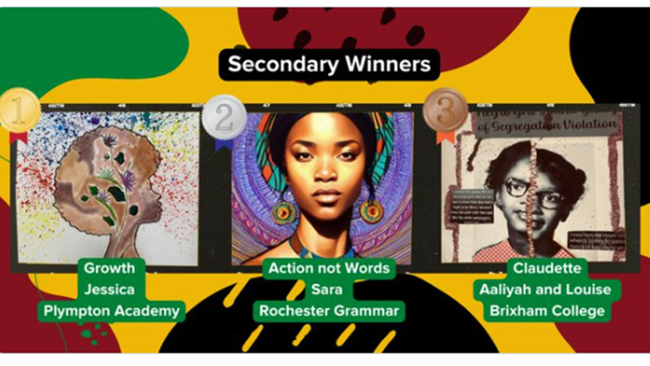 Congratulations to Sara in Year 11 who achieved 2nd place in the TSAT Black History Month Art Competition with her digital artwork. Students were encouraged to submit a piece or art with the theme of 'Action not Words' and nearly 300 entries were received.